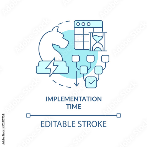 Implementation time turquoise concept icon. Robust energy strategy abstract idea thin line illustration. Coordination. Isolated outline drawing. Editable stroke. Arial, Myriad Pro-Bold fonts used