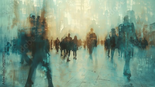 Impressionistic Blur: Artistic Photo of Realistic Blurred Human Figures in a Large Square