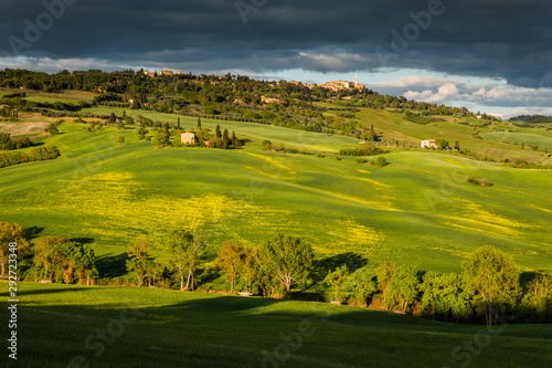 Impressive spring landscape,view with vineyards and cypresses,tuscany,italy
