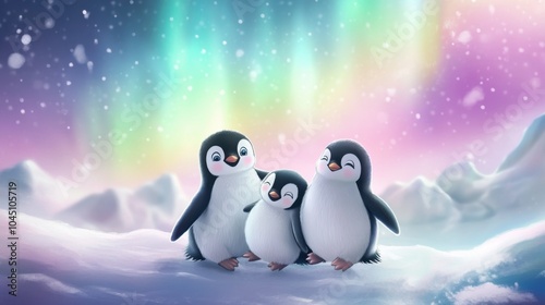 penguin, family, ice, sliding, northern, light, winter, aurora, borealis, pastel, colours, adorable, cosy, heartwarming, illustration, joyful, serene, peaceful, snow, wildlife, animal, nature, cold, playful, scenic, cartoon, wonderland, sibling, togetherness, arctic, adventure, cute, sky, glittering, magical, whimsical, art, imagination, creativity, charming, environment, character, joy, exploration, generative, ai