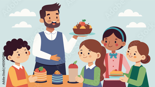 In an effort to learn about different cultures the teacher had students share a traditional dish or object from their familys heritage with the class.. Vector illustration