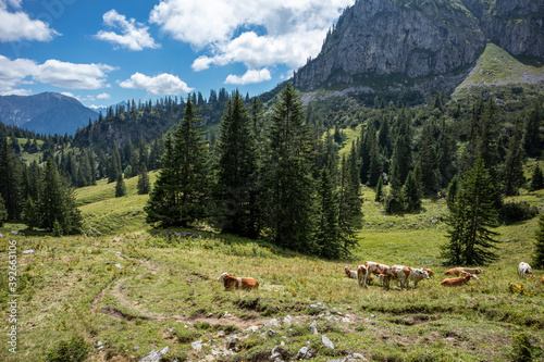 mountain, countryside, nature, heaven, forest, green, summer, vale, view, tree, alpen, blue, grass, cloud, peak, panorama, travel, hike, rock, meadow, hill, bavaria, travel, vacation, recreation, time out