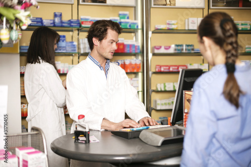 pharmacy, apothecary, medicine, drug, chemistry, consultation, deliberate, pharmacy, biology, patient, client, trickle, apothecary, client, cosmetic, apron, hygiene, hygienic, receipe, dosage, recommendation, recommend, homeopathy, alternative medicine, medicine, alternate, ask, symptom, symptom, council, homeopathic, confidence, side effect, perplexed, contemplate, notice, ache, fear, friendly, laugh, smile