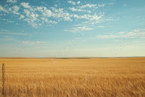 In the summer, a field of yellow barley (Hordeum vulgare) basks in the sunlight.