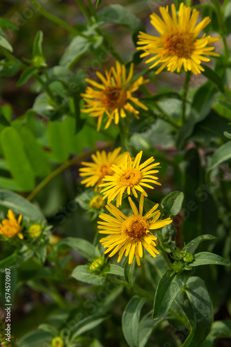 In the summer, the wild medicinal plant Inula blooms in the wild