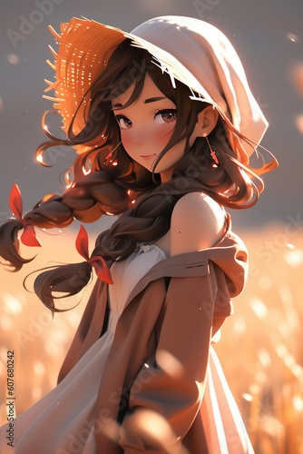 In the wheat field under the sun, the girl smiles happily