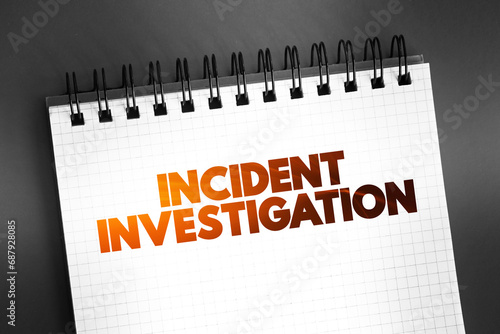 Incident Investigation - process for reporting, tracking, and investigating incidents, text on notepad concept background