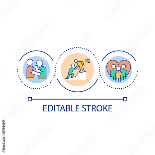 Inclusive leader loop concept icon. Supportive colleagues abstract idea thin line illustration. Positive relationships in team. Isolated outline drawing. Editable stroke. Arial font used