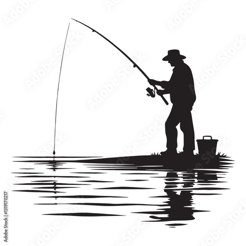 Independent Fisherman silhouette, making a living off the waves - Fisherman illustration - Minimalist Fisherman vector - Profession silhouette