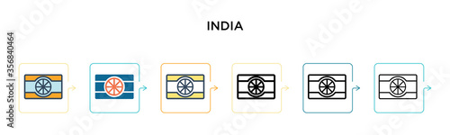 India vector icon in 6 different modern styles. Black, two colored india icons designed in filled, outline, line and stroke style. Vector illustration can be used for web, mobile, ui