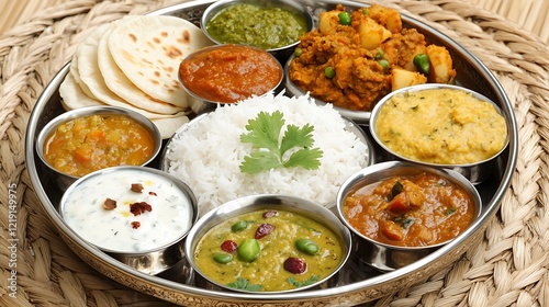indian, cookery, food, curry, rice, bread, dal, vegetable, chutney, green, yellow, orange, red, white, brown, silver, metal, plate, bowl, dish, spicey, flavorful, aromatic, delicious, authentic, traditional, culinary, gastronomy, dinner, lunch, side, main, course, fresh, healthy, epicure, eatery, home, meal, tasty