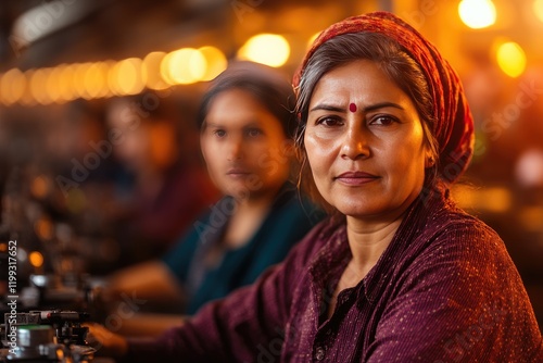 Indian Female Workers Operating Textile Factory Machinery