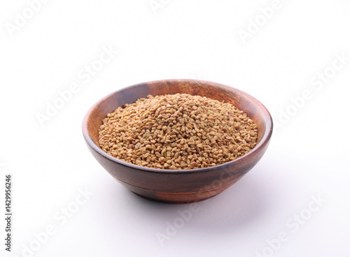 Indian Food Called Fenugreek Seeds or Sabut Methi Dana isolated on white background
