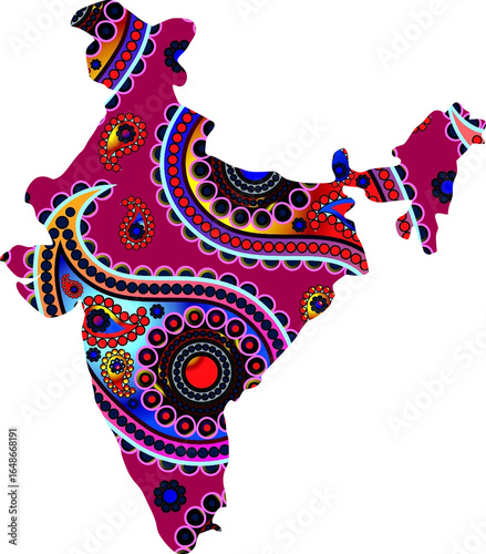 india, map, geography, atlas, border, indian, hindu, independence, print, poster, sticker, pattern, ornament, design, folk, bohemian, flower child, trip, journey, travel, vacation, traveling, oriental, colourful