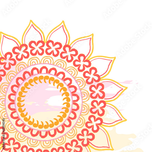 Indian rangoli circle hindu design pencil textured colorful vector card poster