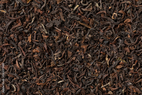Indian Tukvar darjeeling dried tea leaves close up full frame as background