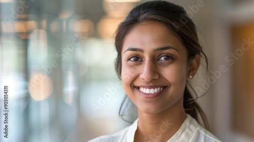 Indian Woman Headshot. Young Gen Z HR Professional Smiling, Representing Company Values and Vision
