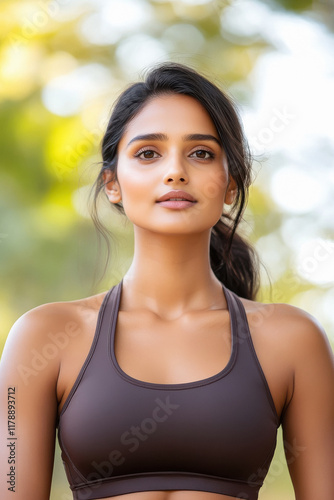 young, indian, asian, woman, female, fitness, beautiful, sunny, athlete, pose, recreation, relaxation, background, outside, person, athletic, activity, grey, brunette, nature, relax, activewear, people, standing, beauty, wall, caucasian, happy, fit, day, girl, coiffure, summer, green, health, sport, posing, morning, training, wellness, black, active, short, park, healthy, sporty, lifestyle, top