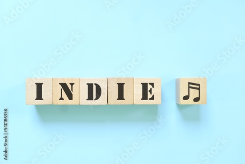 indie, independent, music, genre, concept, style, type, kind, musical, creative, composition, creativity, typography, word, text, wooden, wood, cube, block, conceptual, song, note, design, symbol, icon, classification, style, type, blue, background, industry, decoration, listen, entertainment, sound, culture, tune