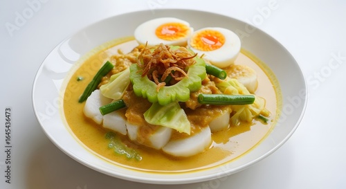 asian cuisine, curry, vegetable, boiled egg, savoury, delicious, epicure, culinary, gastronomy, authentic, spicey, health food, main course, lunch, dinner, breakfast, white plate, studio shot, food photography, appetising, vibrant, fresh, homemade, receipe, cooking, comfort food, cabbage, white background