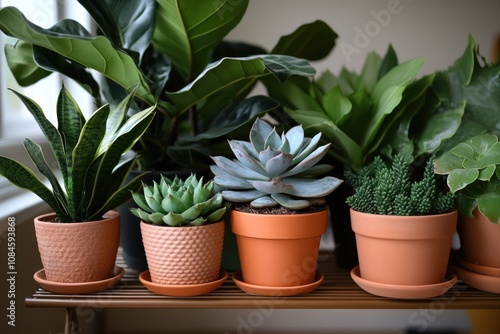 Indoor plants displayed on a shelf