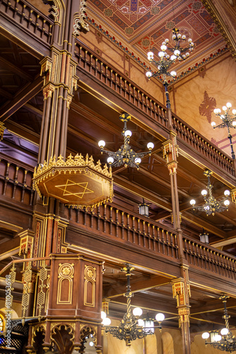 architecture, budapest, building, city landscape, europa, heritage, hungary, jewish, landmark, nobody, old, religious, stained-glass, symbol, synagogue, tour tourism, travel, urban, window, worship, interior, roof, decor, light, lamp, pattern