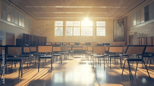 education, school, classroom, class, empty, room, chair, desk, interior, nobody, university, study, training, inside, learn, board, table, blackboard, seat, lesson, indoor, college, white, furniture, light, wooden, high, exam, student, lecture