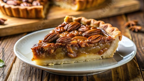 Indulge in a homemade pecan pie slice; a sweet autumn treat, perfectly baked, photographed, and ready for Thanksgiving.