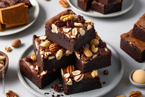 Indulgent Brownie Slices with Nut Toppings in Delicious Flavors Mockup