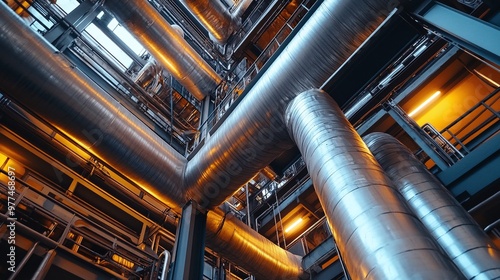 industrial building featuring numerous pipes, capturing the essence of large-scale operations and infrastructure in the engineering sector