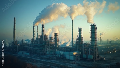 industrial, factory, smoke, chimney, pollution, energy, processing, manufacturing, dawn, coastal, landscape, machinery, environment, production, facility, urban, technology, construction, power, industry, refinery, assembly, exhaust, equipment, horizon, environmental impact, factory, skyline, heavy machinery, infrastructure, work, labor, up high, aerial view, morning light, city, operation, emission, development, oil, gas, resource, economy, growth, air pollution, weather
