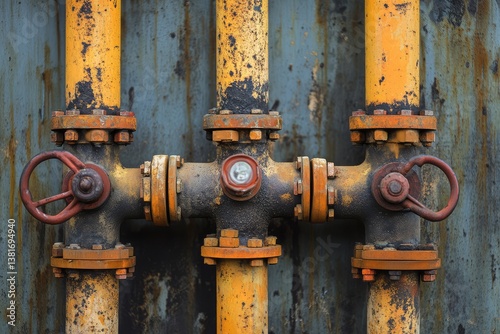 Industrial district heating system with pipes and valves. AI generated illustration.