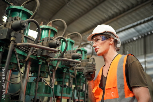 Industrial Engineers in Hard Hats.Work at the Heavy Industry Manufacturing Factory.industrial worker indoors in factory. man working in an industrial factory.