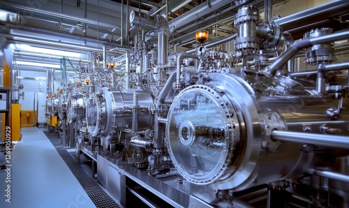 equipment, industrial, machinery, pipe, laboratory, stainless steel, manufacturing, science, technology, processing, chemical, research, production, factory, clean room, metal, shiny, transparent, glasses, circular, automation, engineering, pipeline, sterile, futuristic, modern, blue, detail, apparatus, process
