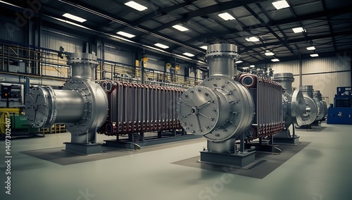 Industrial heat exchangers in a factory setting illustrate heat transfer processes created with generative ai