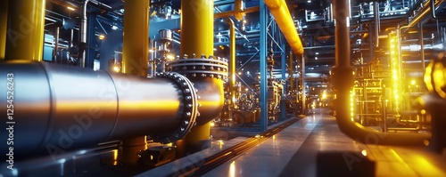 industrial, interior, metal, pipe, yellow, support, futuristic, factory, setting, technology, structure, design, architecture, construction, engineering, equipment, system, plant, production, manufacturing, refinery, energy, power, infrastructure, complex, connection, steel, metallic, shiny, bright, modern, automation, machinery, abstract, perspective, detail, technical, innovation, process, industry, distribution, network, valva, bolt, flange, tube, line, framework, grid