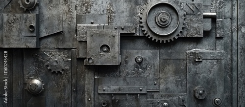 Industrial Machine Mold Background with Gears and Panels in Shades of Grey for Advanced Techniques and Text Space