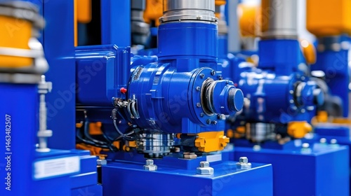 machine, industrial, machinery, equipment, technology, manufacturing, factory, metal, blue, yellow, engine, pump, gear, steel, industry, component, system, production, power, process, automation, engineering, mechanic, detail, texture, closeup, metalwork, hardware, industrial design, mechanical, precision, isolated, copy space