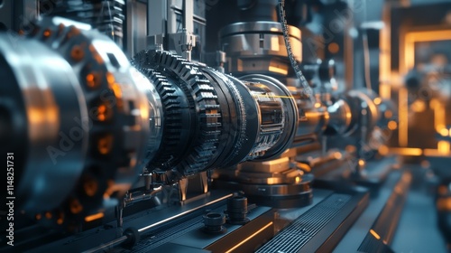 Industrial machinery components advanced manufacturing facility high-resolution image futuristic environment close-up perspective