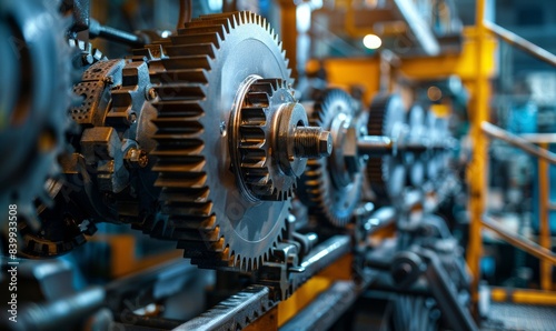 Industrial machinery with large cogs and gears in a factory