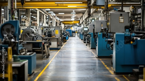 factory, machinery, manufacturing, industrial, production, work, automation, metal, steel, machine, equipment, tool, building, industry, interior, technology, process, plant, construction, engineering, assembly, line, workspace, floor, light, beam, overhead, yellow, blue, design, system, operation, clean, modern, productivity, metalwork, mechanic, business, development, structure