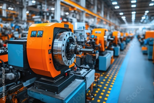 machine, factory, industrial, manufacturing, automation, technology, production, metal, steel, processing, equipment, lathe, automated, workshop, work, engineering, precision, modern, machinery, metalworking, tool, digital, control, panel, screen, process, line, row, floor, light, blue, orange, shiny, clean, workspace, industry, mechanical, design, innovation, facility, system, operation