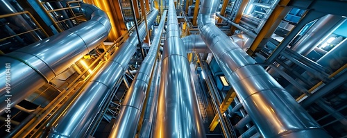 Industrial Pipes and Ducts in a Modern Power Plant - Photo