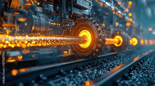 industrial, roller, glowing, steel, rod, transport, manufacturing, process, machinery, technology, efficiency, equipment, heat, system, automation, metal, fabrication, innovation, workflow, precision, engineering, construction, design, performance, output, movement, material, tool, operation, safety, quality, control, component, dynamic, physics, element, integration, cycle, analysis, solution, optimization, phase, shaping, sector, resilience, durability, dependability