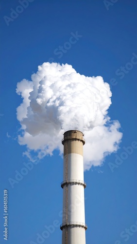 smokestack, industrial, pollution, sky, cloud, white, plume, emission, factory, power, plant, blue, air, environment, climate, discharge, toxic, smoke, nature