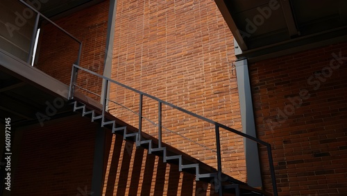 brick wall, natural light, industrial design, minimalism, warm tones, stair, staircase, interior, stair, building, architecture, step, home, staircase, house, wood, wooden, design, metal, balustrade, step, railing, up, stairwell, construction, banister, wall, window, room, indoor