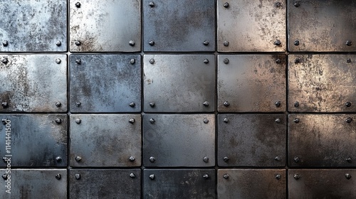 Industrial tiled metal texture with geometric patterns, durable surface desig