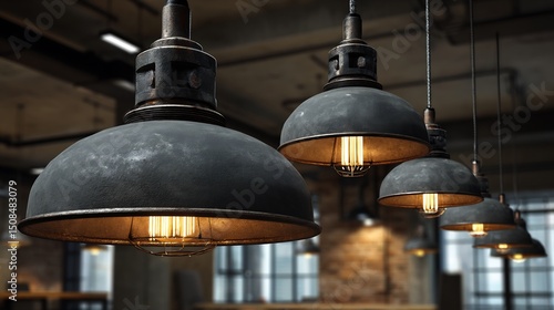 Industrial Vintage Pendant Lamps with Loft Interior.