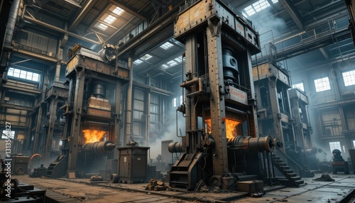 industrial, factory, machinery, workshop, manufacturing, flames, equipment, production, technology, metalwork, heavy, tool, engineering, interior, smoke, structure, steel, automation, labor, process, work, environment, energy, factory, safety, loud, craftsmanship, metal, heat, design, operation, heavy machinery, work area, assembly line, interior design, assembly, industry, innovation