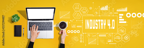 Industry 4.0 theme with person using a laptop computer